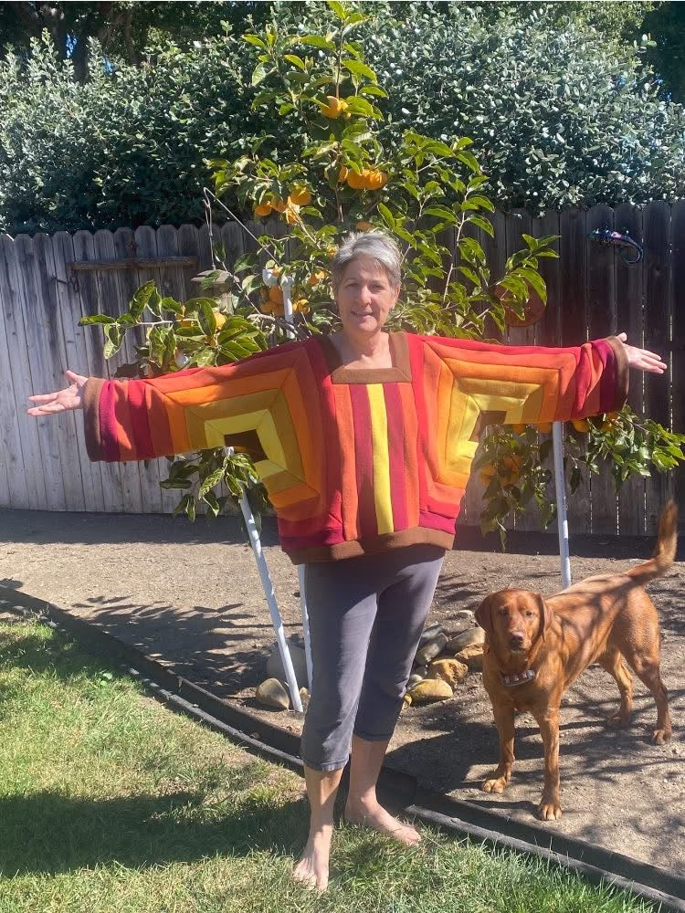 Inspired by the crochet world’s iconic Hexagon Cardigan, this fabric version brings a modern twist with clean geometric lines and a bold striped pattern.