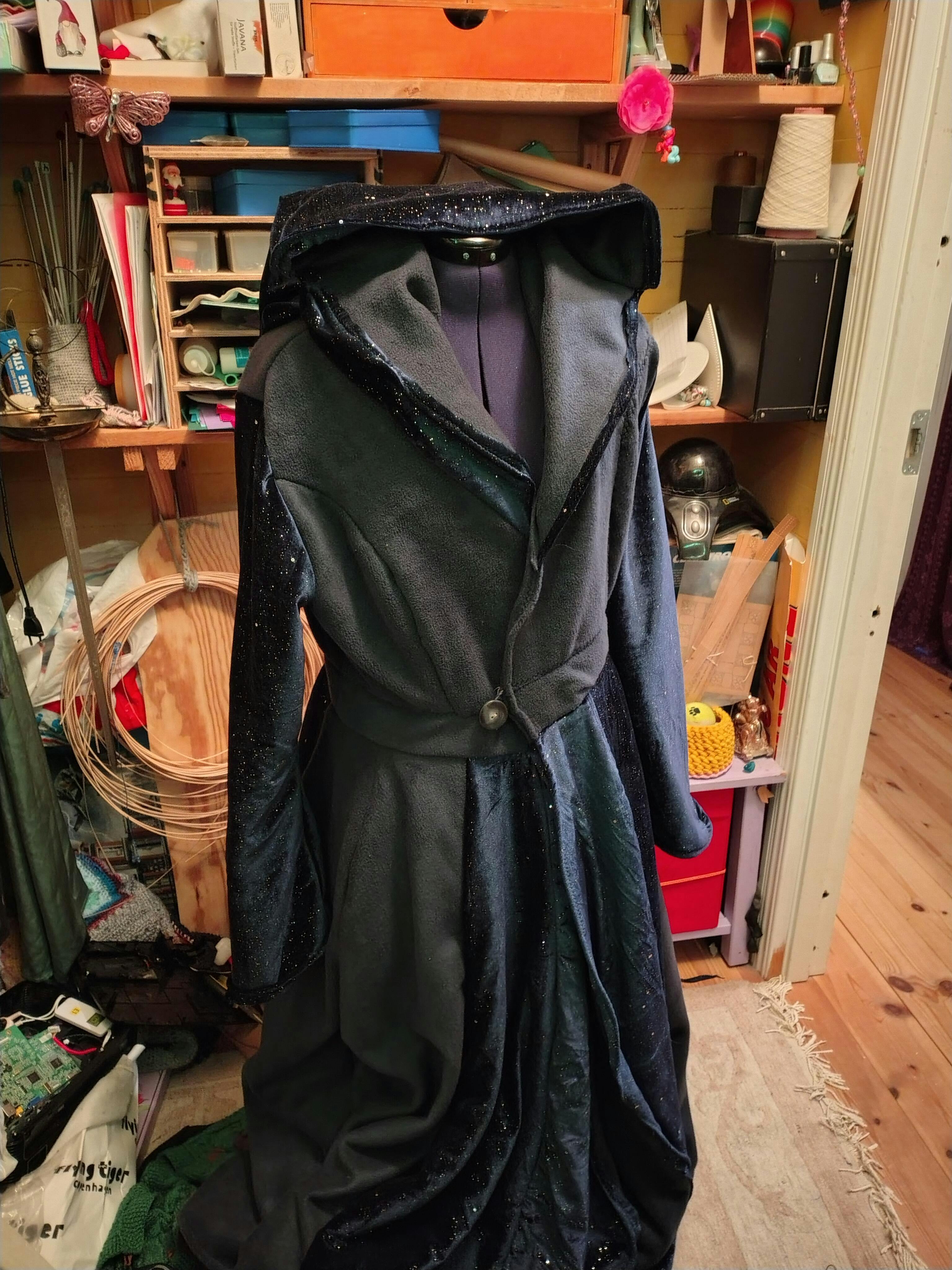 In this pattern, we have paired it with our ‘Positively Pixie' plain hood and long, slightly flared, plain 'Sidhe' sleeves.
